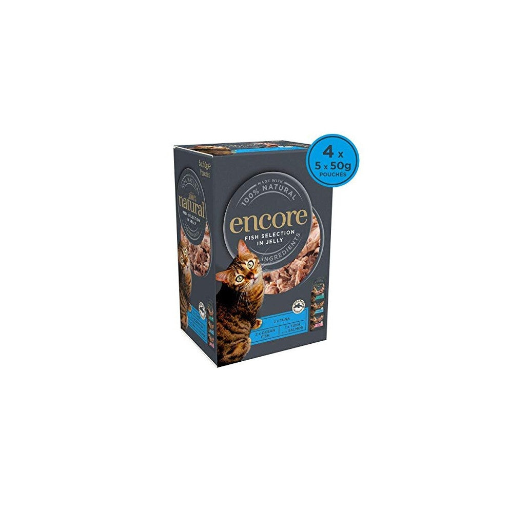 Encore 100% Natural Wet Cat Food, Multipack Fish Selection in Jelly, 4x 5x50g Pouch (Total 20).
